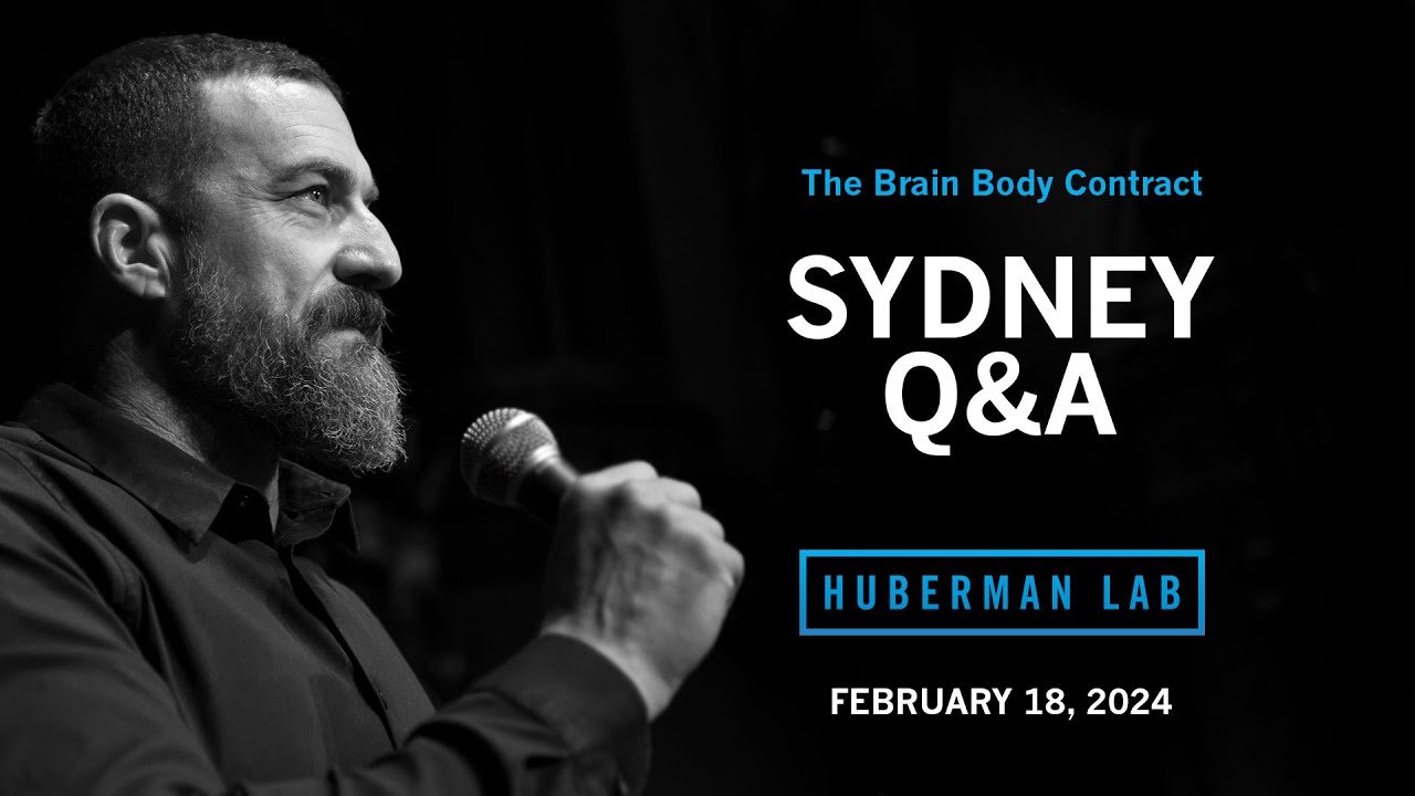 welcome to the huberman Lab podcast where we discuss science and science-based tools for everyday [Music] life I'm Andrew huberman and I'm a professor of neurobiology and Opthalmology at Stanford School of Medicine recently the hubman Lab podcast hosted a live event at the ICC theater in Sydney Australia the event was called the brain body contract and featured a lecture followed by a question and answer session with the audience we wanted to make the question and answer session available to every one regardless if you could attend I also would like to thank the sponsors for the event they are eight sleep and ag1 eight sleep makes Smart mattress covers with cooling Heating and sleep tracking capacity now I've spoken many times before on this podcast about the fact that sleep is the critical foundation for mental health physical health and performance now one of the key things to getting the best possible night sleep is to control the temperature of your sleeping environment and that's because in order to fall and stay deeply asleep your body temperature actually needs to drop by about 1 to 3° and in order order to wake up feeling refreshed and alert your body temperature actually has to increase by about 1 to 3° eight sleep mattress covers make it extremely easy to control the temperature of your sleeping environment and thereby to control your core body temperature so that you fall and stay deeply asleep and wake up feeling your absolute best I've been sleeping on an eights Sleep mattress cover for about 3 years now and it has completely transformed the quality of my sleep for the better eight sleep recently launched their newest generation of pod cover the Pod 4 ultra the Pod 4 cover has improved cooling and heating capacity higher Fidelity sleep tracking technology and the Pod 4 cover has snoring detection that will automatically lift your head a few degrees to improve airflow and stop your snoring if you'd like to try an eights Sleep mattress cover you can go to 8sleep.com huberman to save $350 off their pod 4 ultra eight sleep currently ships to the USA Canada UK select countries in the EU and Australia again that's 8sleep.com huberman the other live event sponsor ag1 is a vitamin mineral probiotic drink that also contains adaptogens and other critical micronutrients I've been taking ag1 daily since 2012 so I'm delighted that they decided to sponsor the live event I started taking ag1 and I still take ag1 once or twice a day because it gives me vitamins and minerals that I might not be getting enough of from Whole Foods that I eat as well as adaptogens and micronutrients those adaptogens and micronutrients are really critical because even though I strive to eat most of my foods from unprocessed or minimally processed Whole Foods it's it's often hard to do so especially when I'm traveling and especially when I'm busy so by drinking a packet of ag1 in the morning and often times also again in the afternoon or evening I'm ensuring that I'm getting everything I need I'm covering all of my foundational nutritional needs and I like so many other people that take ag1 regularly just report feeling better and that shouldn't be surprising because it supports gut health and of course gut health supports immune system health and brain health and it's supporting a ton of different cellular and organ processes that all interact with one another other so while certain supplements are really directed towards one specific outcome like sleeping better or being more alert ag1 really is foundational nutritional support it's really designed to support all of the systems of your brain and body that relate to mental health and physical health if you'd like to try ag1 you can go to drink a1.com huberman to claim a special offer they'll give you five free travel packs with your order plus a year supply of vitamin D3 K2 again that's drink a1.com huberman and now for the live event at the ICC theater in Sydney [Music] [Applause] [Music] Australia does having an afternoon sleep affect your quality of sleep at night um great question I can keep this one pretty brief um we just recorded a six episode series that will be aired later this year uh with the one and only Mighty Matt Walker who wrote The Marvelous book why we sleep and uh we went into this topic in depth the business of naps is the following keep them shorter than 90 minutes so you don't disrupt your nighttime sleep don't do them at all if it disrupts your nighttime sleep so if you're somebody that for whom even 10 minutes of napping disrupts your nighttime sleep don't do that if you're somebody who wakes up from naps feeling groggy that's what's called Sleep inertia this is what gave rise to the ever famous napino of having some coffee and then taking a nap or an espresso and then taking a nap again I get obsessed with gnomen clature why didn't they call it a Espress espresso nap I don't know naps are wonderful if they're shorter than 90 minutes don't interfere with nighttime sleep but I in particular am a big fan of as many of you know this business of non-sleep deep rest of putting the body into what body still mind awake and we know based on several studies from the University of Copenhagen that that actually replenishes levels of dopamine in certain key areas of the brain that restore mental and physical Vigor and do not disrupt nighttime sleep but rather enhance one's ability to fall and stay asleep or to fall back asleep so not only are these states of body still mind awake very beneficial it seems or I should say perhaps for creativity because that was all anak data but we know from real data from laboratory data on many subjects peer-reviewed Etc that body still mind alert is actually an effective means to improve one's sleep and perhaps even make up for sleep that one has lost so I encourage you if you're a napper great and if you have challenges with sleep in any way that you think might be related to your napping activity that you consid